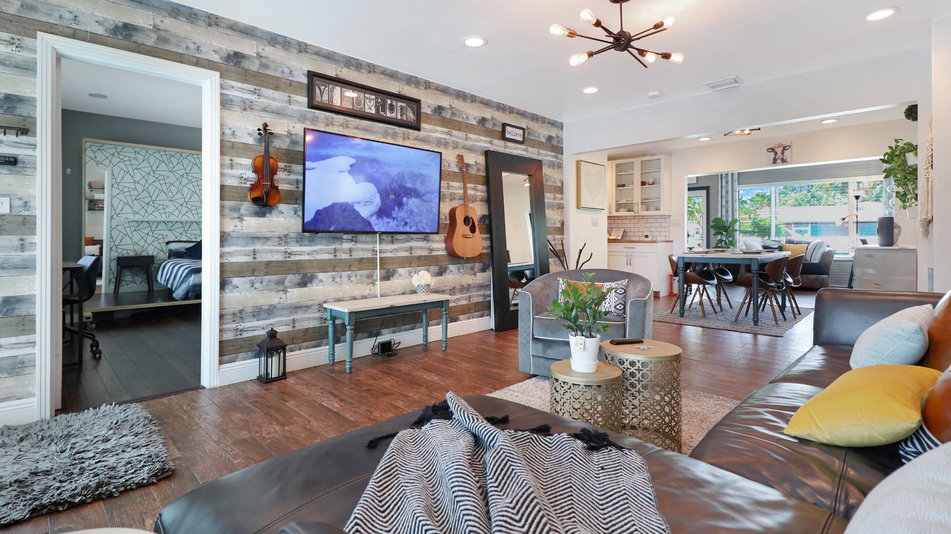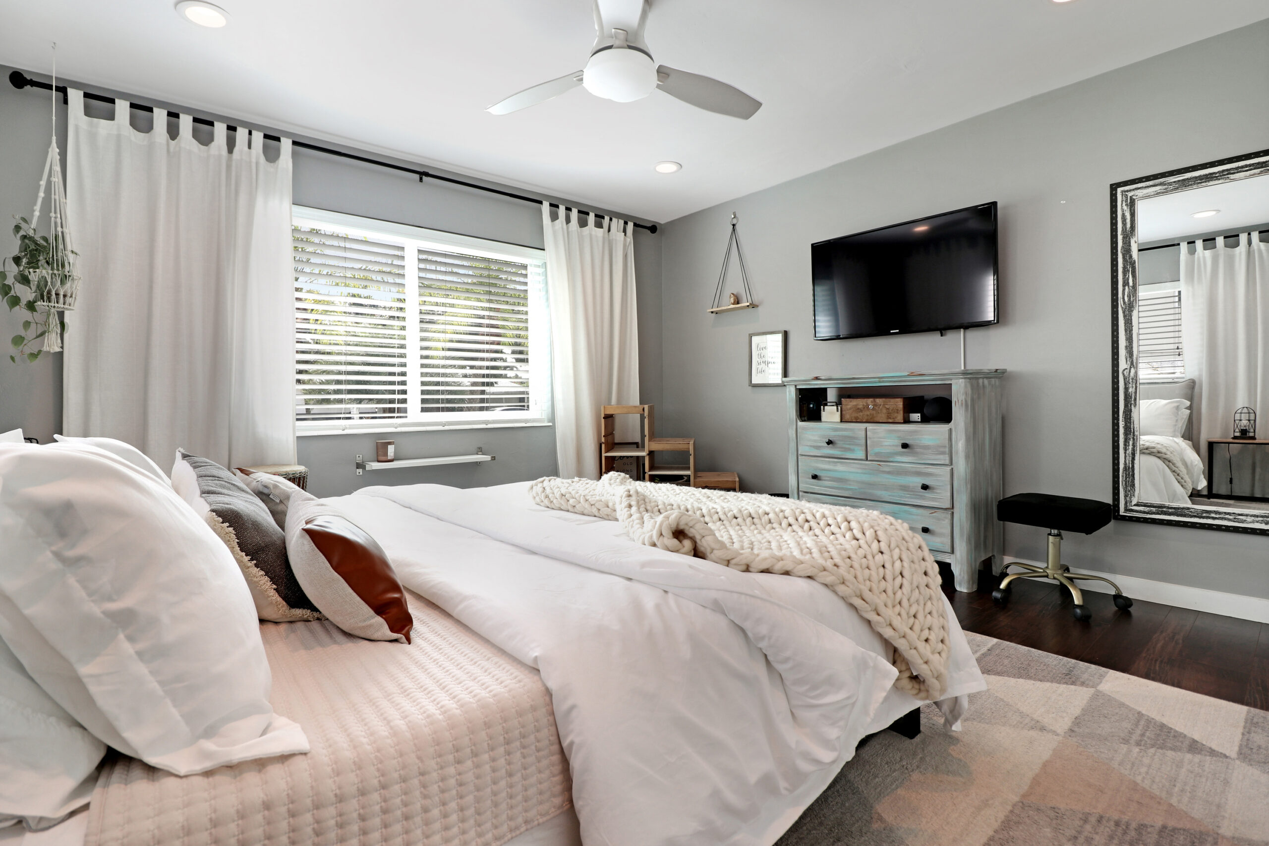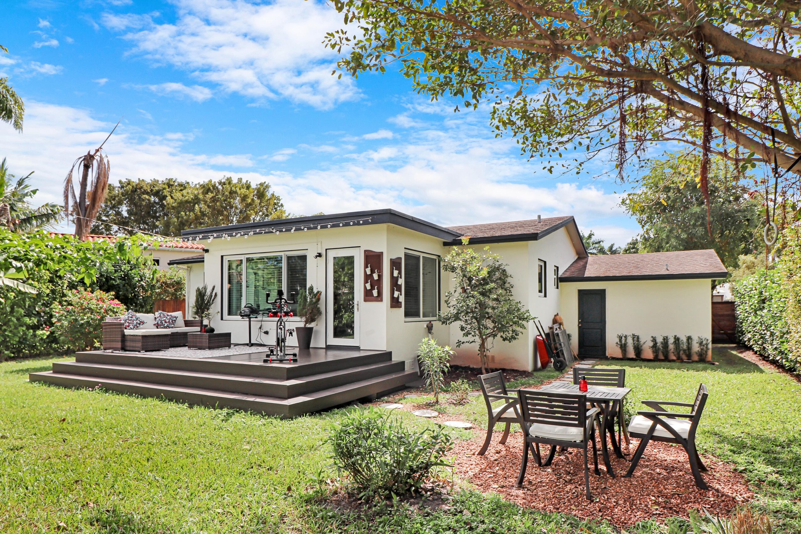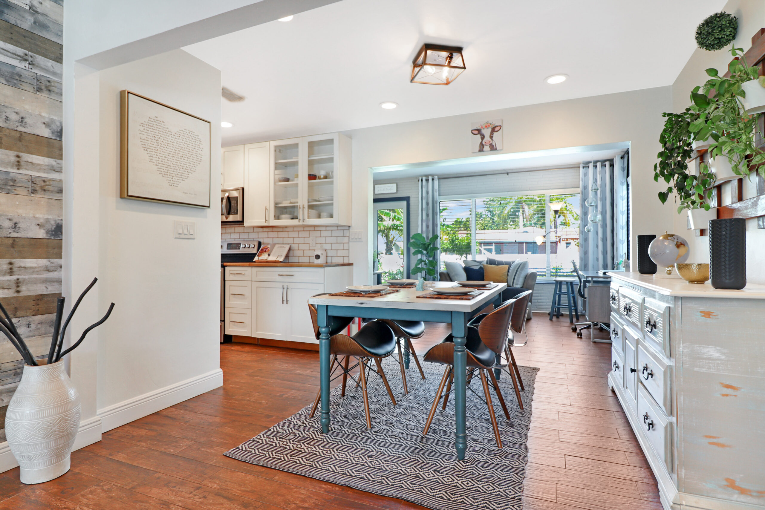 Blending farmhouse charm with boho flair, this stunning 2,500 sq ft 3-bedroom, 2-bath Miami Shores residence showcases tropical modern living at its finest. We executed a comprehensive transformation, including extensive exterior renovations, custom patio deck design, and lush landscaping. Inside, every space was meticulously reimagined to create a harmonious retreat where rustic elements meet contemporary tropical style.